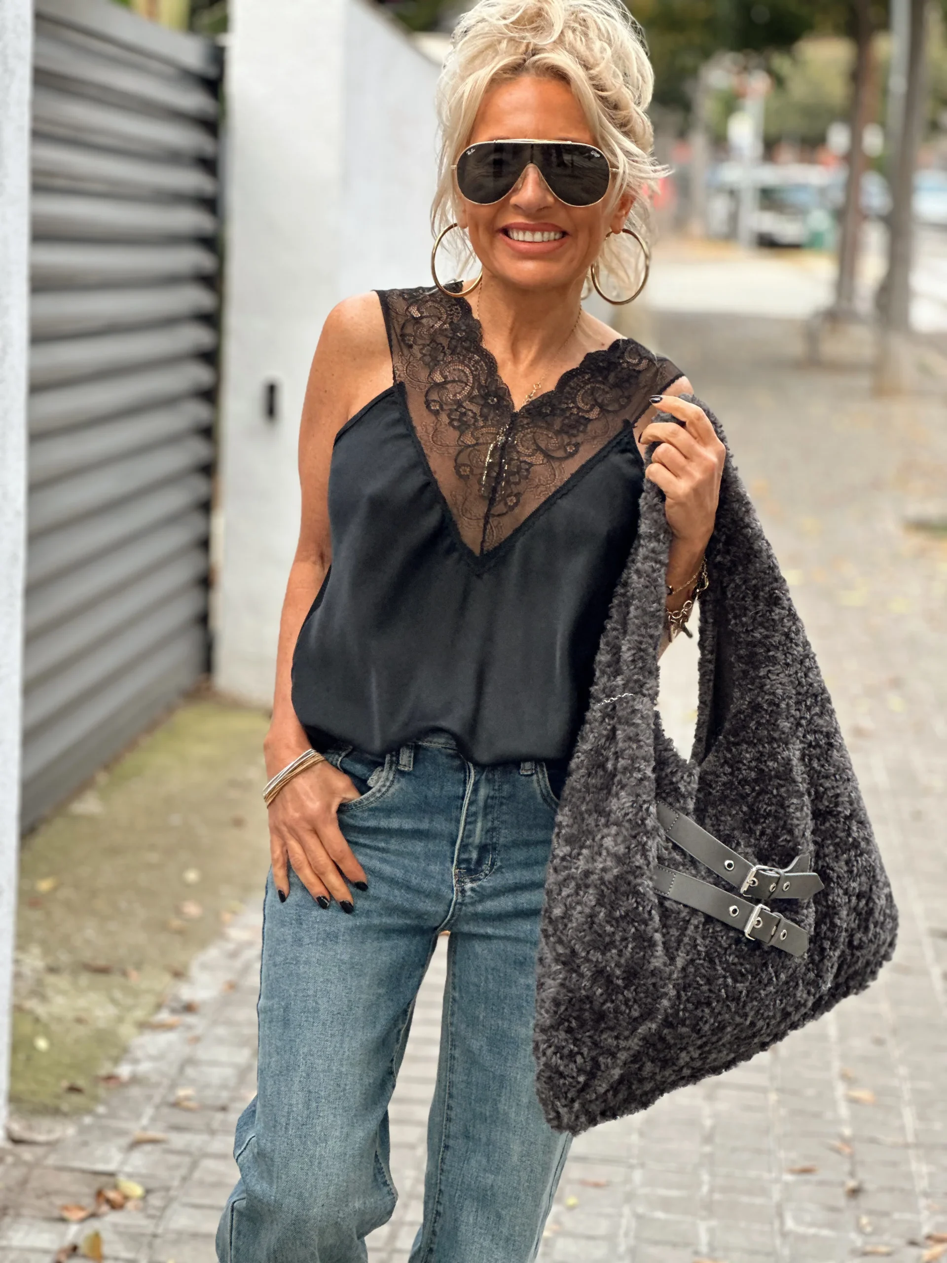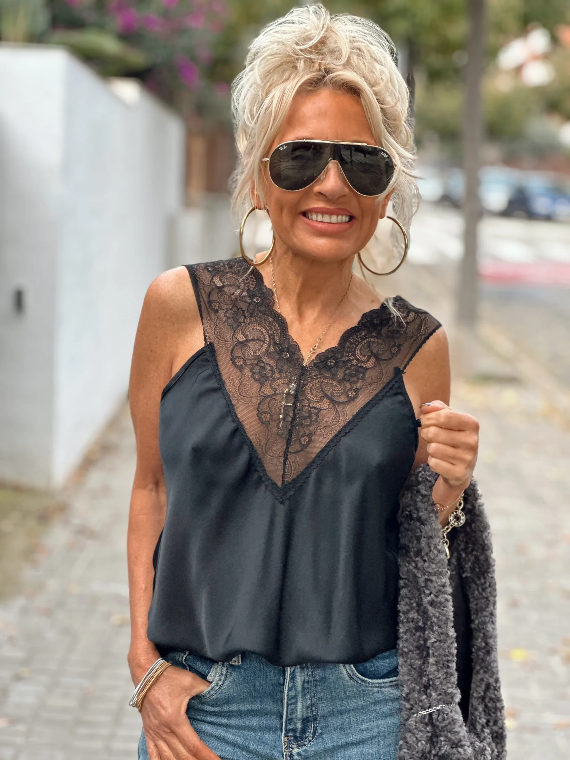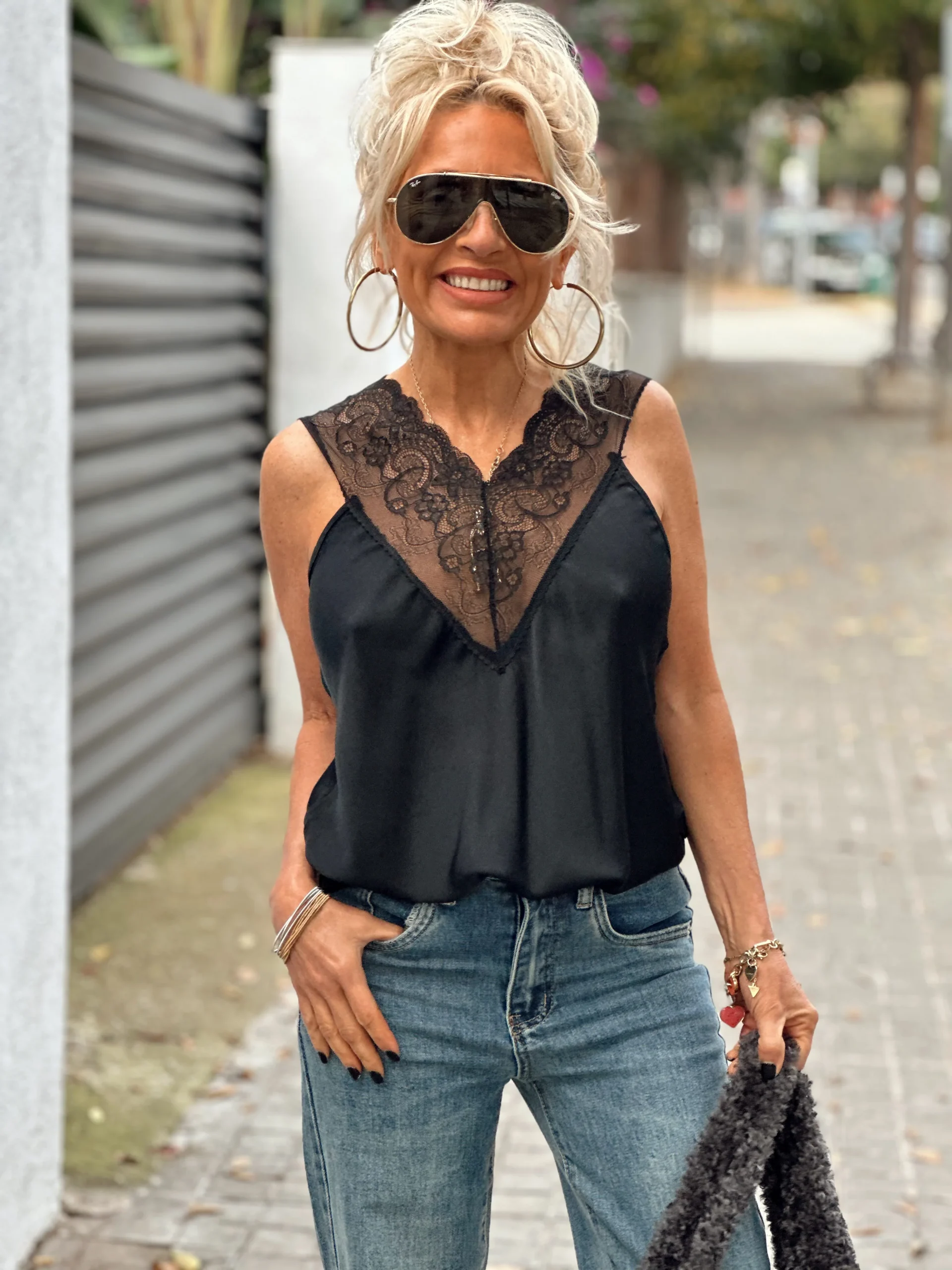 Este top de encaje es simplemente espectacular: romántico, sexy y elegante a la vez. Es una pieza imprescindible, súper original y muy cómoda de llevar. Realmente, es un top increíblemente hermoso que añade un toque único a cualquier look.✨