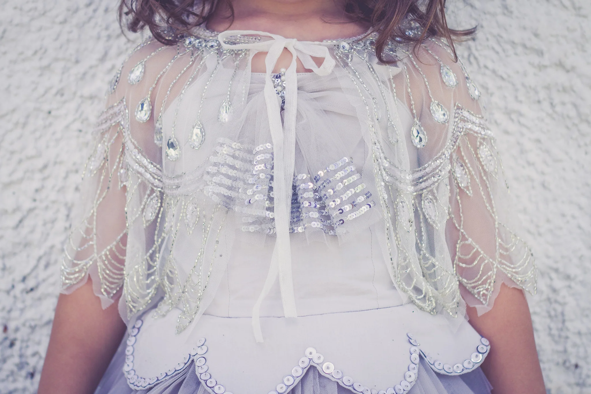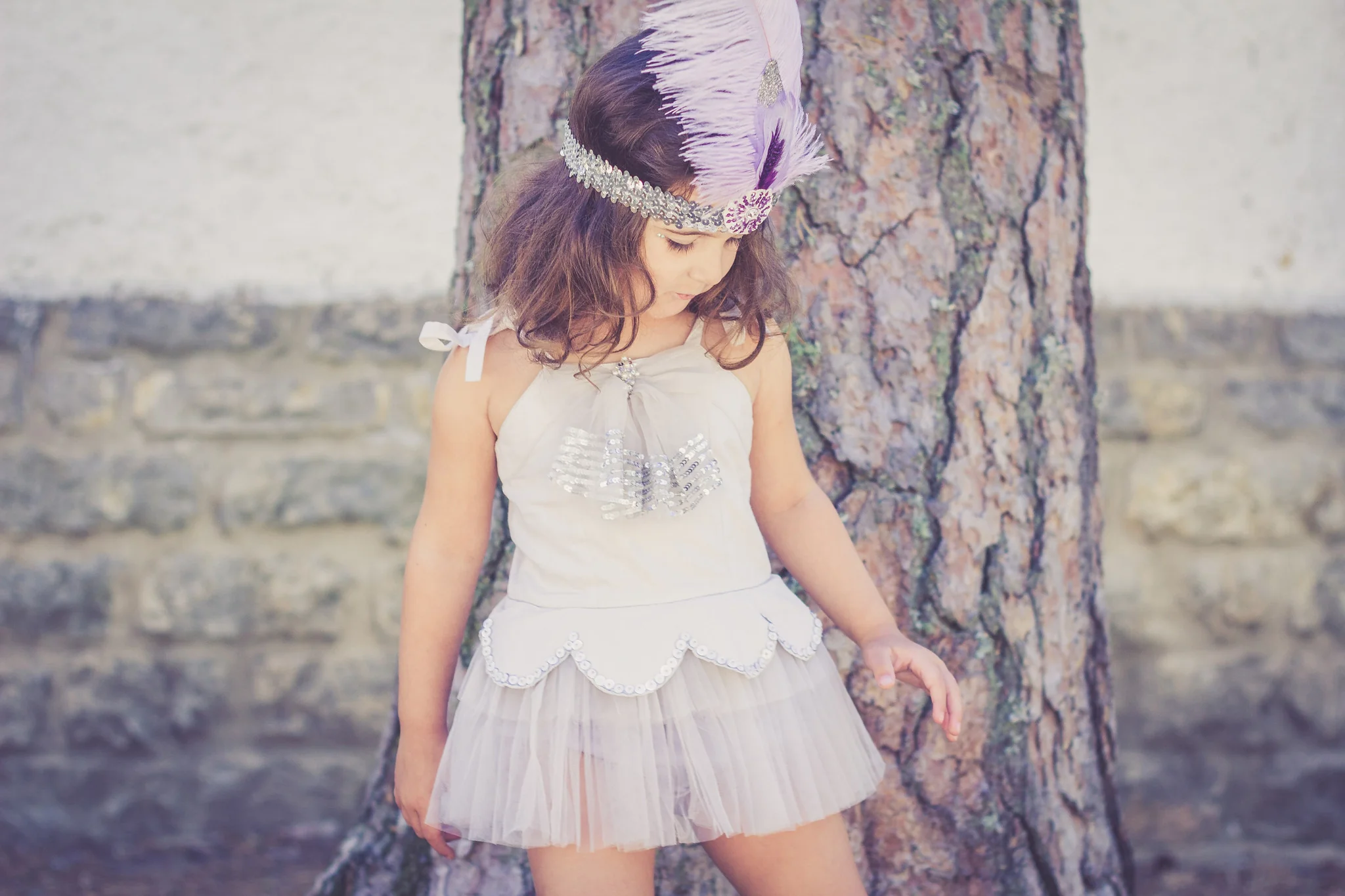 Uno de nuestros favoritos, El mono Walk the Plank tendrá a las pequeñas saltando del mástil a las velas! Hecho en suave algodón tejido con un borde ondulado en la cinturas sobre una falda de tul platino que contrasta con el algodón lila de los pantaloncitos interiores. Remates de lentejuelas plateadas en la cintura y un gran lazo adornado con lentejuelas y perlitas añaden encanto al resultado.