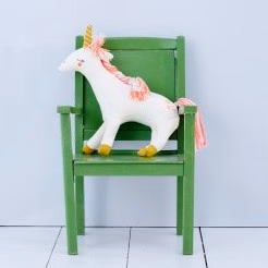 Este adorable unicornio será el foco de atención en la habitación de los niños, además de compañero de juegos incansable. Un delicioso toque de magia hecho en agradable punto tejido. Sus patitas y cuerno tienen destellos dorados gracias a al tejido con lúrex y su crin y cola están hechos con hilos de lana de alegres colores.