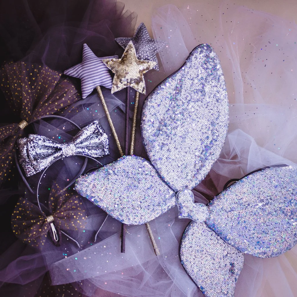 Esparce un poco de polvo de hadas con esta varita en forma de estrella embellecida con lentejuelas plateadas. Perfecta para conjuros mágicos, fiestas de disfraces, cumpleaños o cualquier ocasión que merezca una pizca de magia.