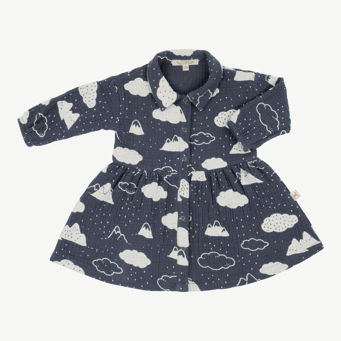 Vestido de tejido muselina con botón de madera en la parte delantera. ¡Teñido en prenda para un look desgastado!