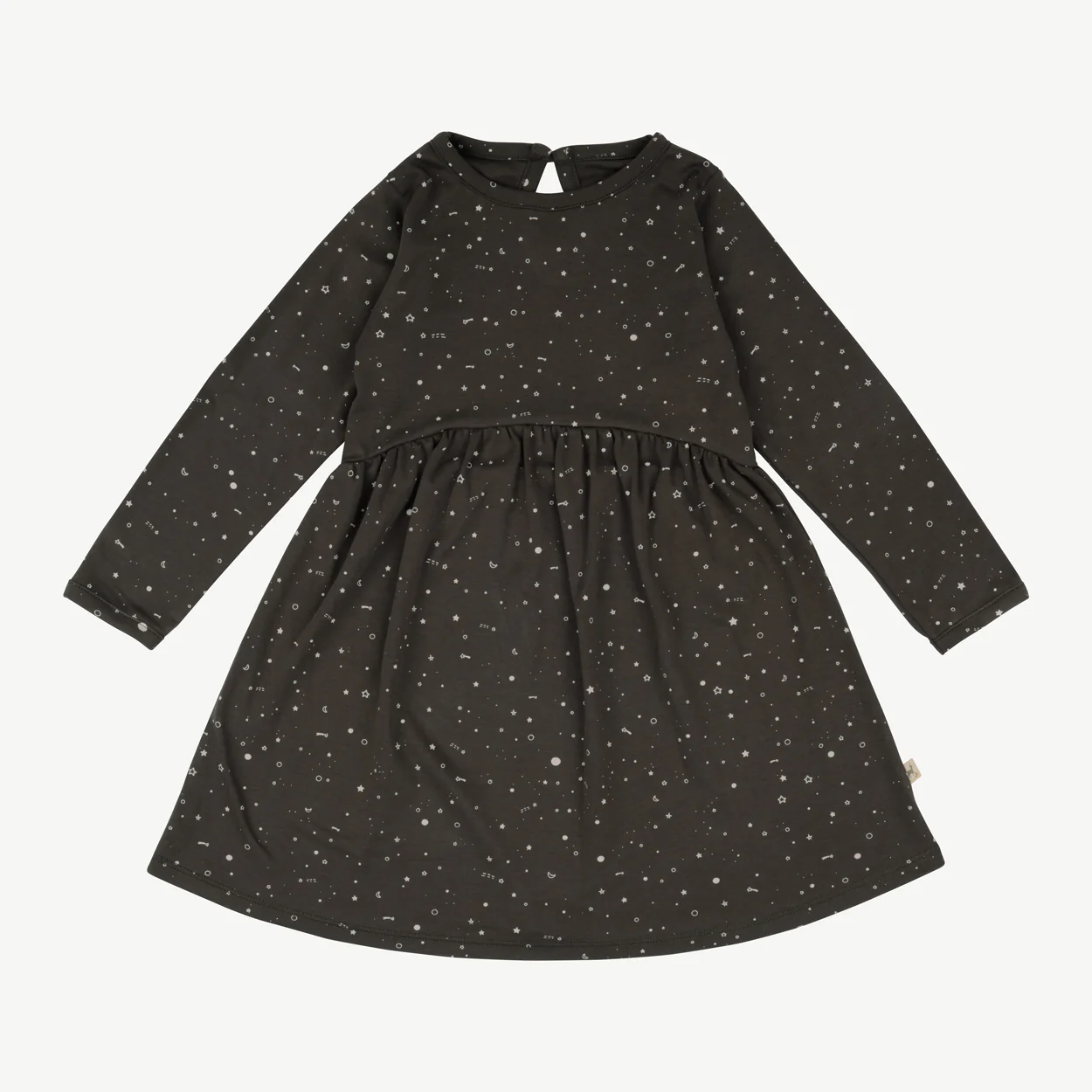 Es un precioso vestido de tejido interlock de doble punto con un botón de madera en la espalda. Está confeccionada con nuestra exclusiva tela de algodón pima peruano supersuave y duradera.