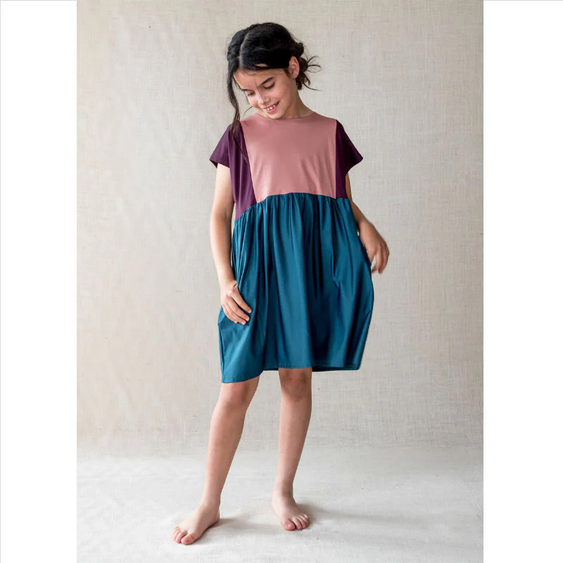 Un color block atrevido pero también dulce que encanta a madres y niñas, la comodidad de la lycra lo hace ideal para los días de playa y piscina y es el complemento perfecto para la línea de baño en los mismos colores