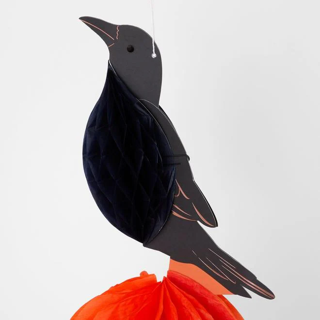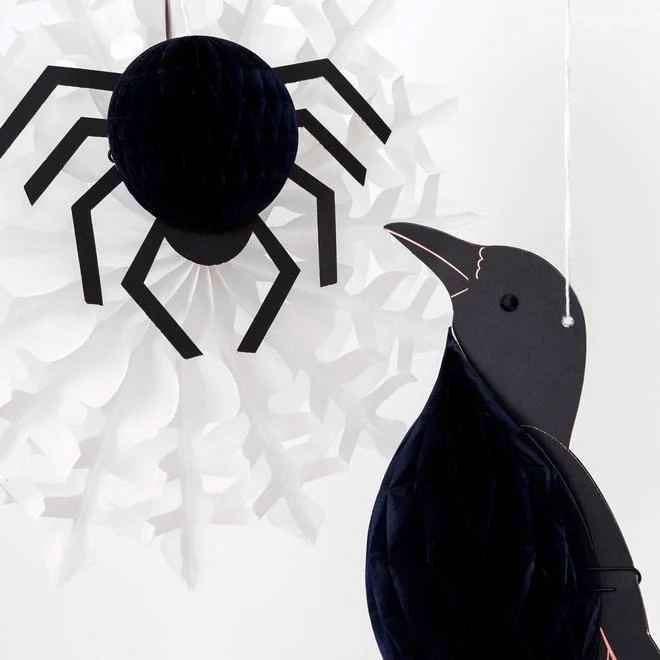 Estas fabulosas decoraciones para Halloween con un cuervo, una araña, un esqueleto y una bruja encantarán a tus invitados.