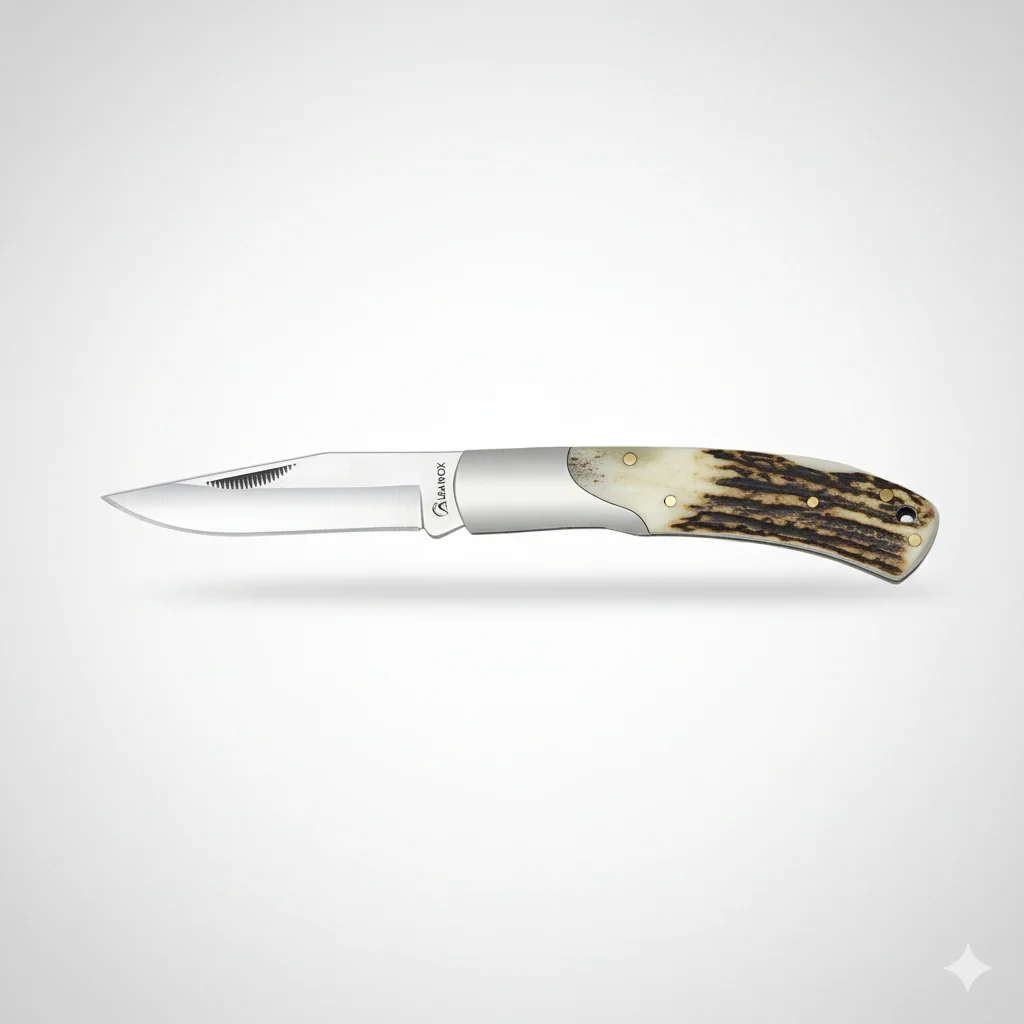 Navaja Clásica Albainox con Mango de Asta de Ciervo y Hoja de Acero Inoxidable 7,8 cm | Cuchillería Española de Colección