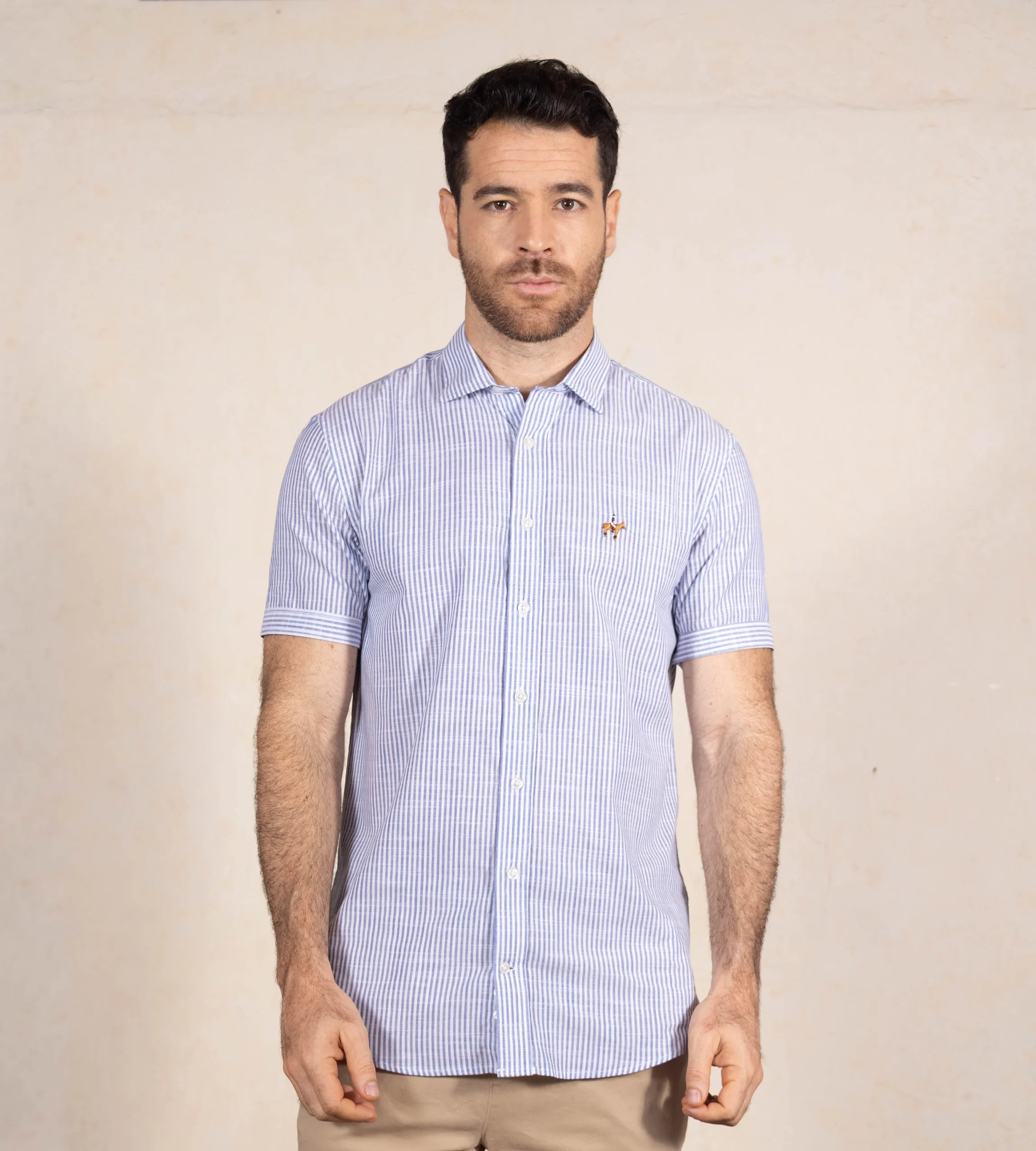 Camisa Manga Corta de Rayas Blanco Azul Ref. 105031225