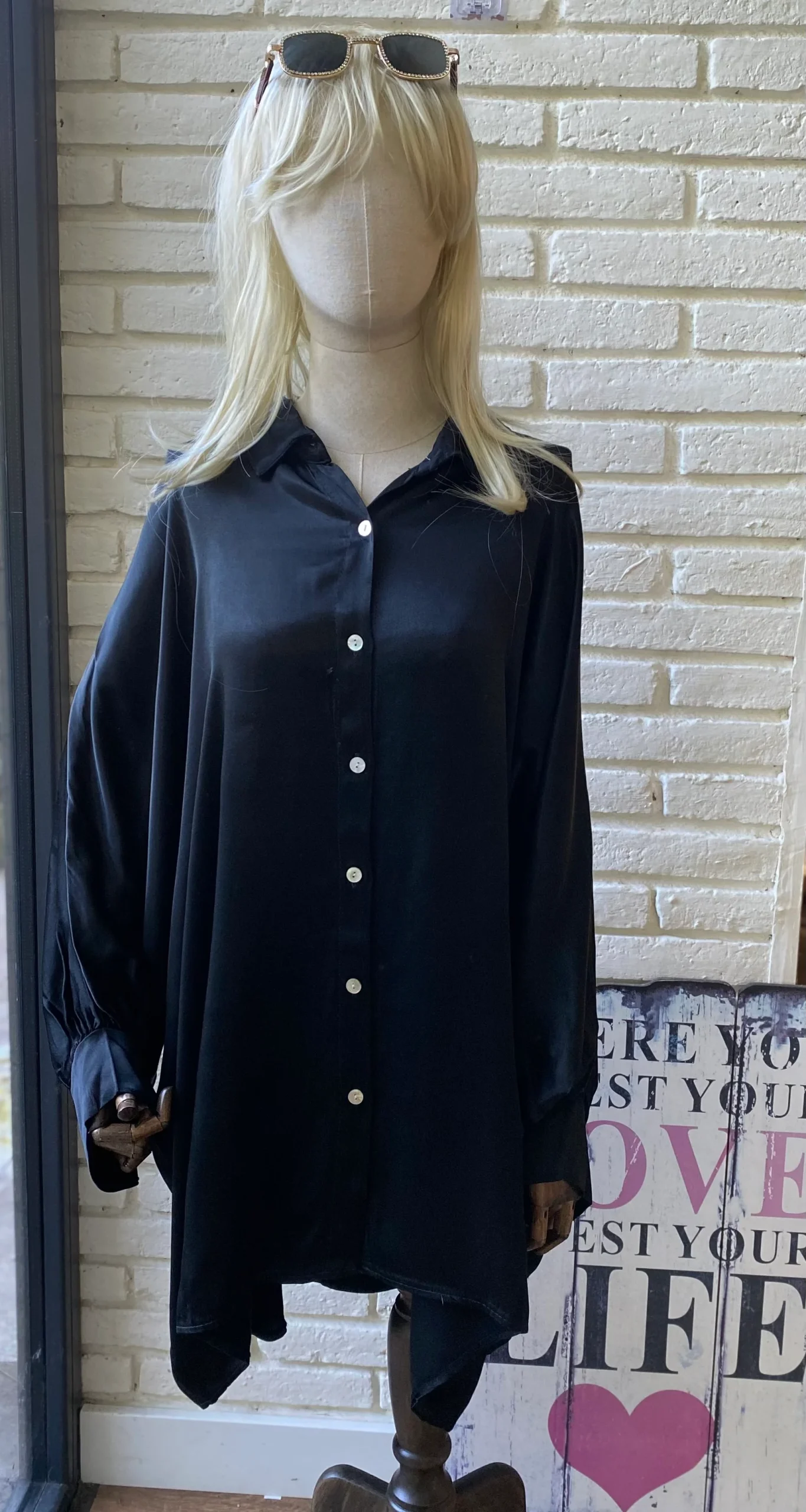 CAMISA VESTIDO SATINADO ALEXIA NEGRO