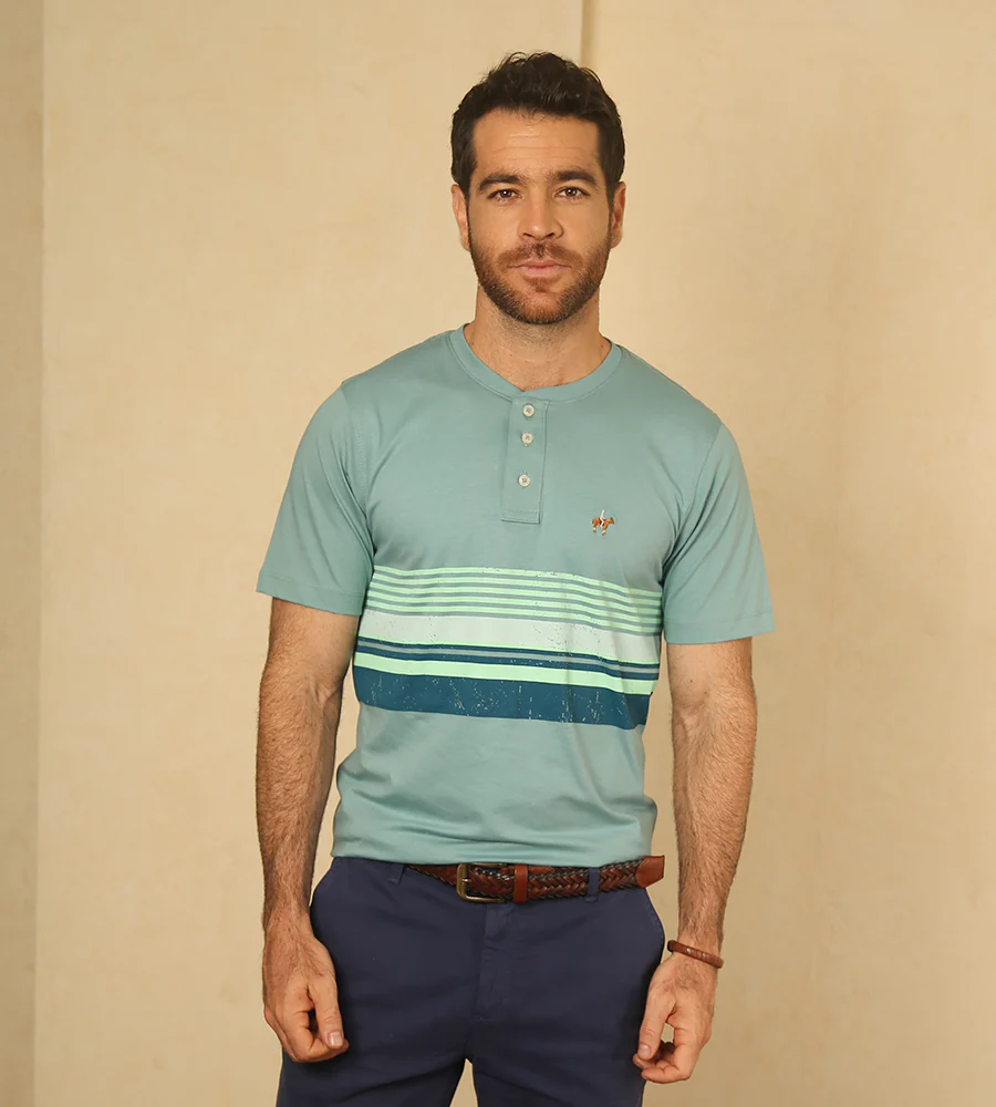 Camiseta Rayas Cuello Henley Verde Grisoso Ref. 146010425