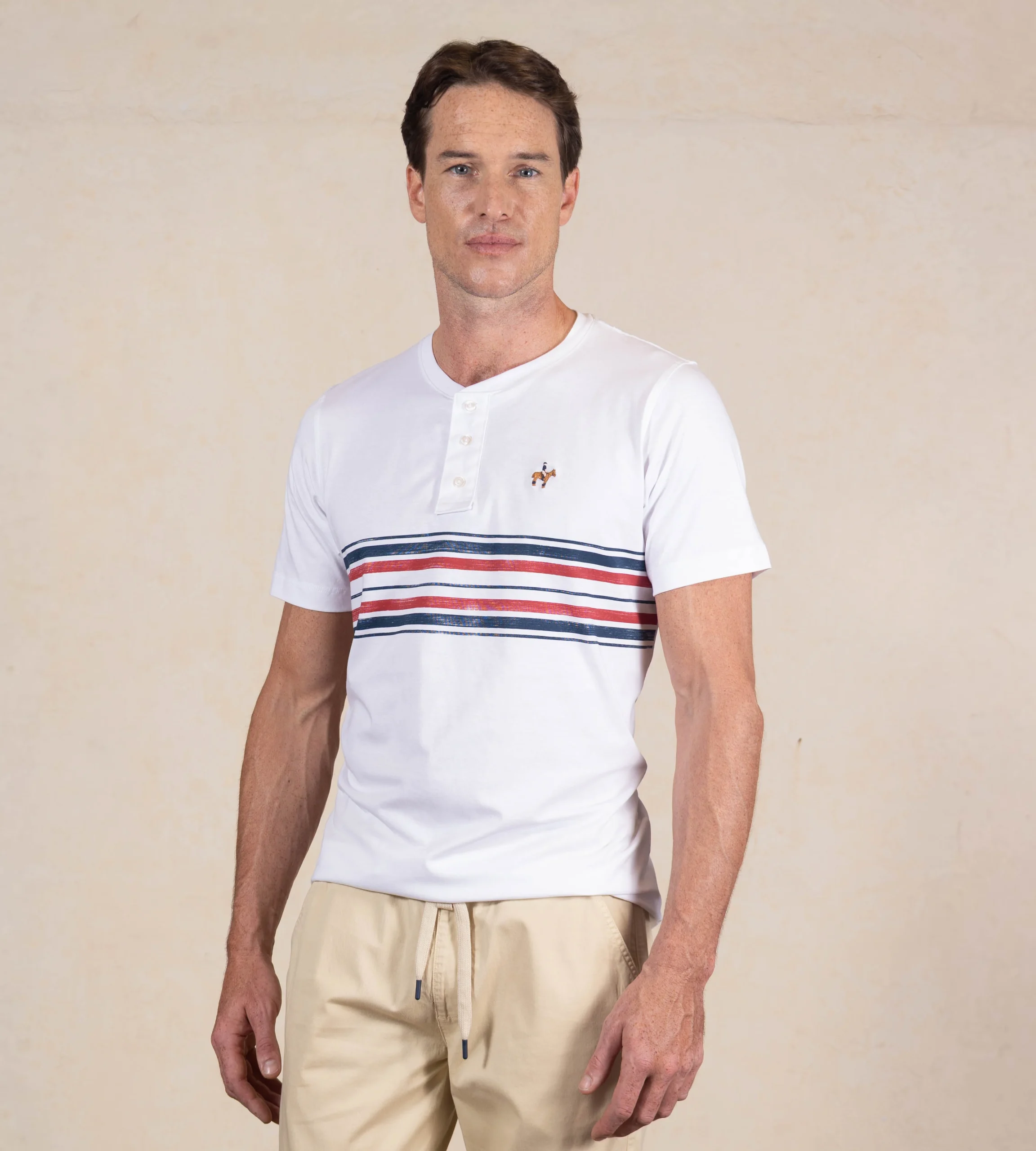 Camiseta Rayas Cuello Henley Blanco Ref. 146011225