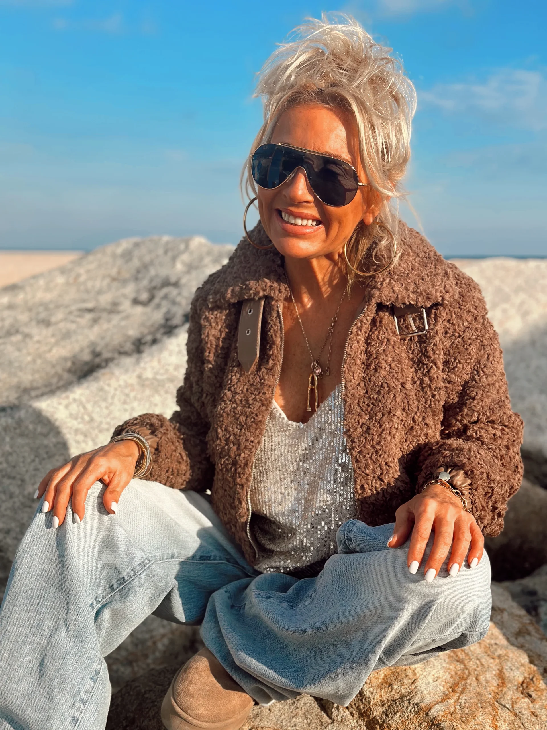 CHAQUETA GAMUZA DE PELO SINTÉTICO REVERSIBLE MARRON