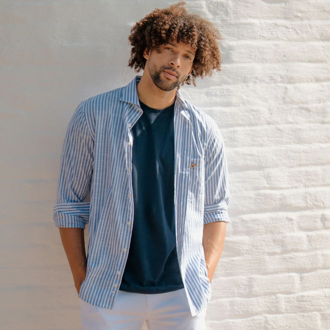 Camisa Rayas Manga Larga Color Blanco Azul Ref. 116031225