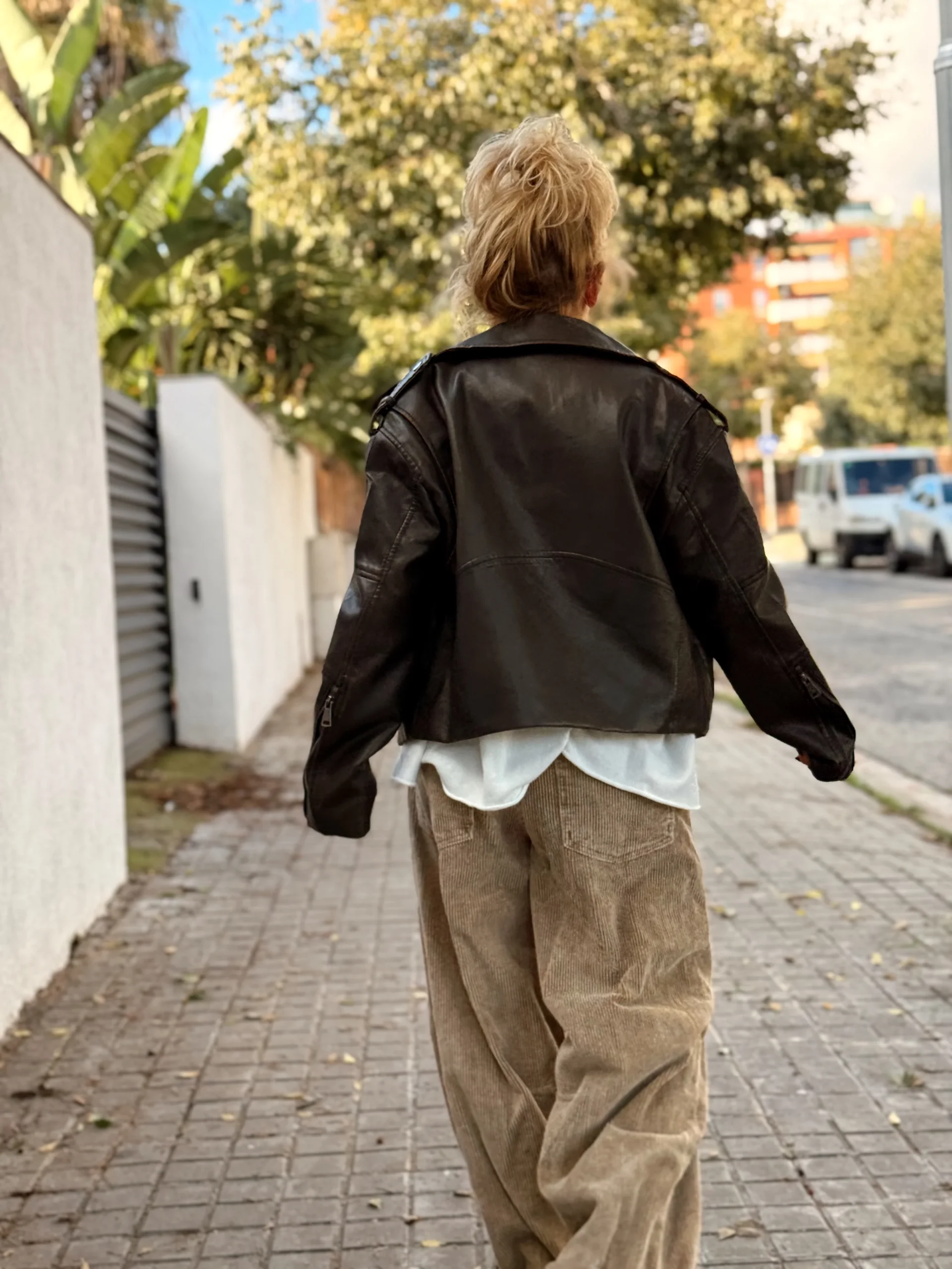CAZADORA TEJANO CON FORRO PELO SINTÉTICO CRUDO